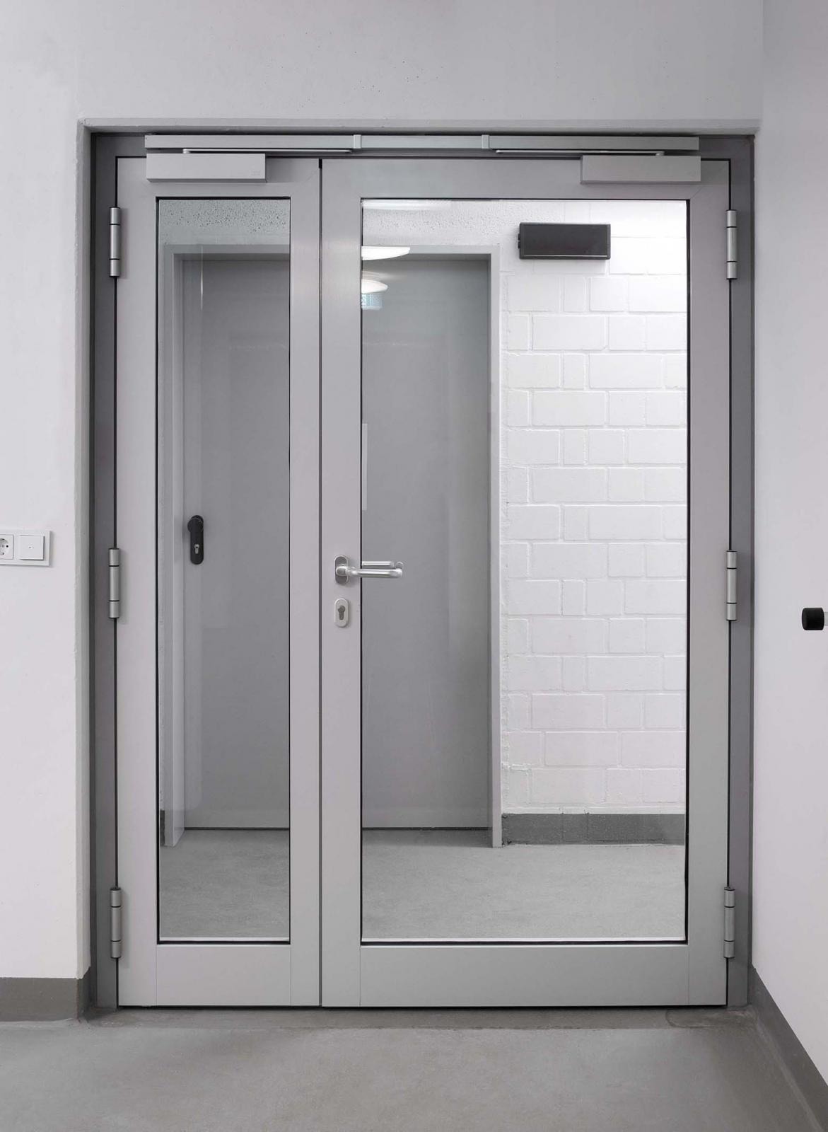 От качества заполнителя зависит, насколько эффективно преграда будет препятствовать распространению высоких температур. Материал должен быть негорючим и стойким к температурным воздействиям. В комплектацию противопожарной алюминиевой двери также входят уплотнители, ручки, замки и иные элементы фурнитуры. Дополнительные фурнитурные детали: доводчики, отбойные пластины, пороги разных типов.