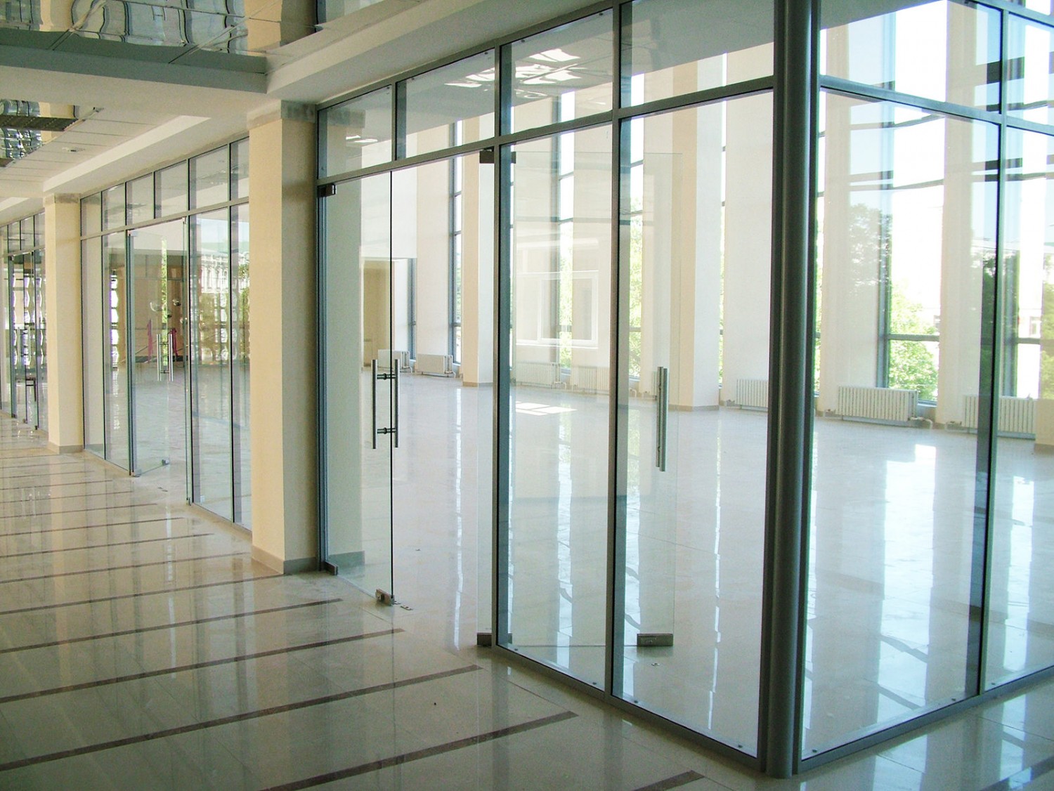 Противопожарные преграды могут изготавливаться как в полностью остекленном варианте, так и в частично остекленном исполнении. Основное предназначение таких конструкций — это разделение общего помещения на несколько отдельных рабочих зон. При этом преследуется несколько целей: